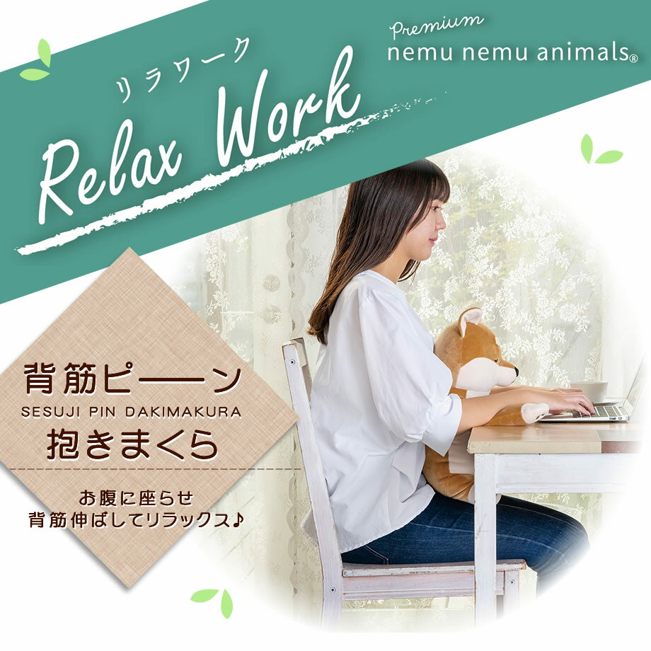 【NEW】背筋ピーン抱きまくら 【リラワーク】プレミアム ねむねむアニマルズ nemunemu クッション 抱き枕 犬 猫 カワウソ キャラクター ぬいぐるみ ギフト プレゼント | 可愛い 癒しグッズ かわいい ふわふわ ネムネム