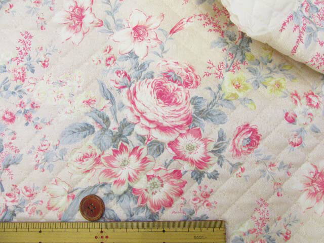 素材:綿100%のシーチング生地をキルティング加工(中綿ポリエステル100%)した生地です。