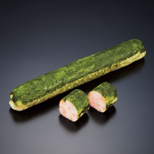商品説明 品名 海老烏賊緑小袖 原材料名 えび、いか、魚肉、菜種油、ほうれん草、卵黄、澱粉、 清酒、全卵、醤油、発酵調味料、食塩、砂糖、乳たん白、 (原材料の一部に小麦を含む) 内容量 345g(3本) (1本当たり:直径約2cm×20cm) 賞味期限 製造日より1年 保存方法 冷凍 要冷凍−18℃以下 凍結前加熱 加熱してあります。